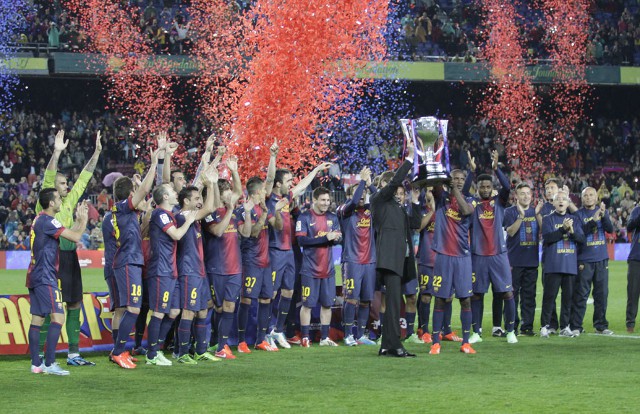 El Barcelona de Tito Vilanova entró en 2013 con un nuevo Balón de Oro para Leo Messi y con una buena ventaja sobre su máximo rival, el Real Madrid, y con algo menos sobre el Atlético de Madrid, tras una espectacular primera vuelta, como ya os contamos en el resumen de 2012. Era pues, simplemente, cuestión de tiempo que el equipo azulgrana se apuntara una nueva liga, la número 22, con el Real Madrid segundo después de que el Atlético bajara su rendimiento en las últimas jornadas.