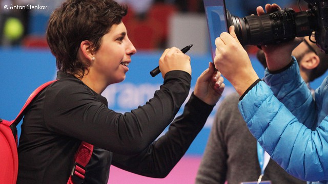 Carla se convirtió en la cuarta jugadora en ganar 50 o más partidos este año tras Ana Ivanovic (58) y Serena Williams (52) y quedó emparejada con la checa Karolina Pliskova que también participa esta semana en Bulgaria y que tiene la posibilidad además de alargar su estadística en la Fed Cup. La mejor tenista española le ganó a Petkovic 6-0 6-4.